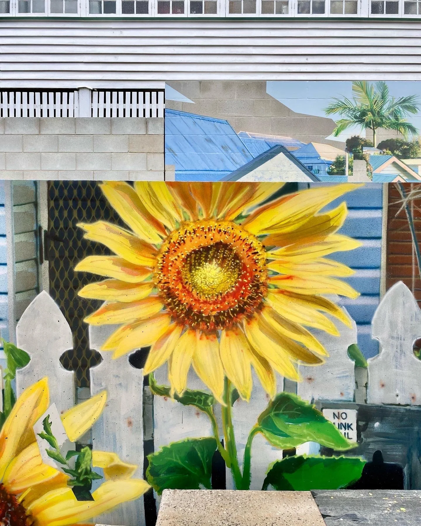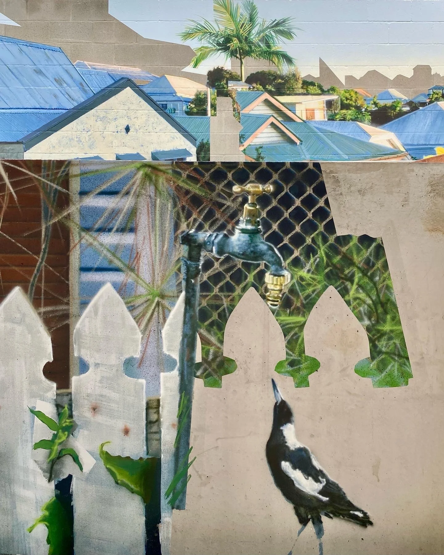This artwork captures twelve months of life in West End. By merging and layering photographs taken throughout the year. Creating a painting that holds multiple perspectives and moments in time. The work reflects the personality and essence of the suburb as I’ve experienced it, embedding those impressions into the architecture and life of the house.